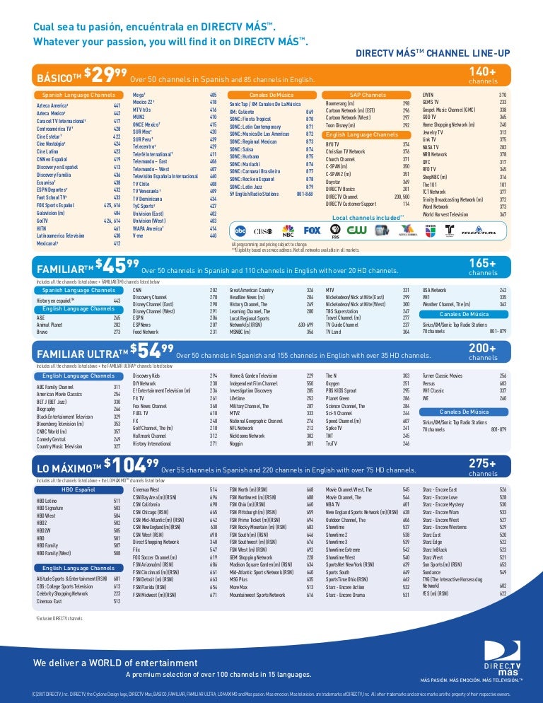 Directv Channel Lineup Channel Guide By Package Cabletv Com